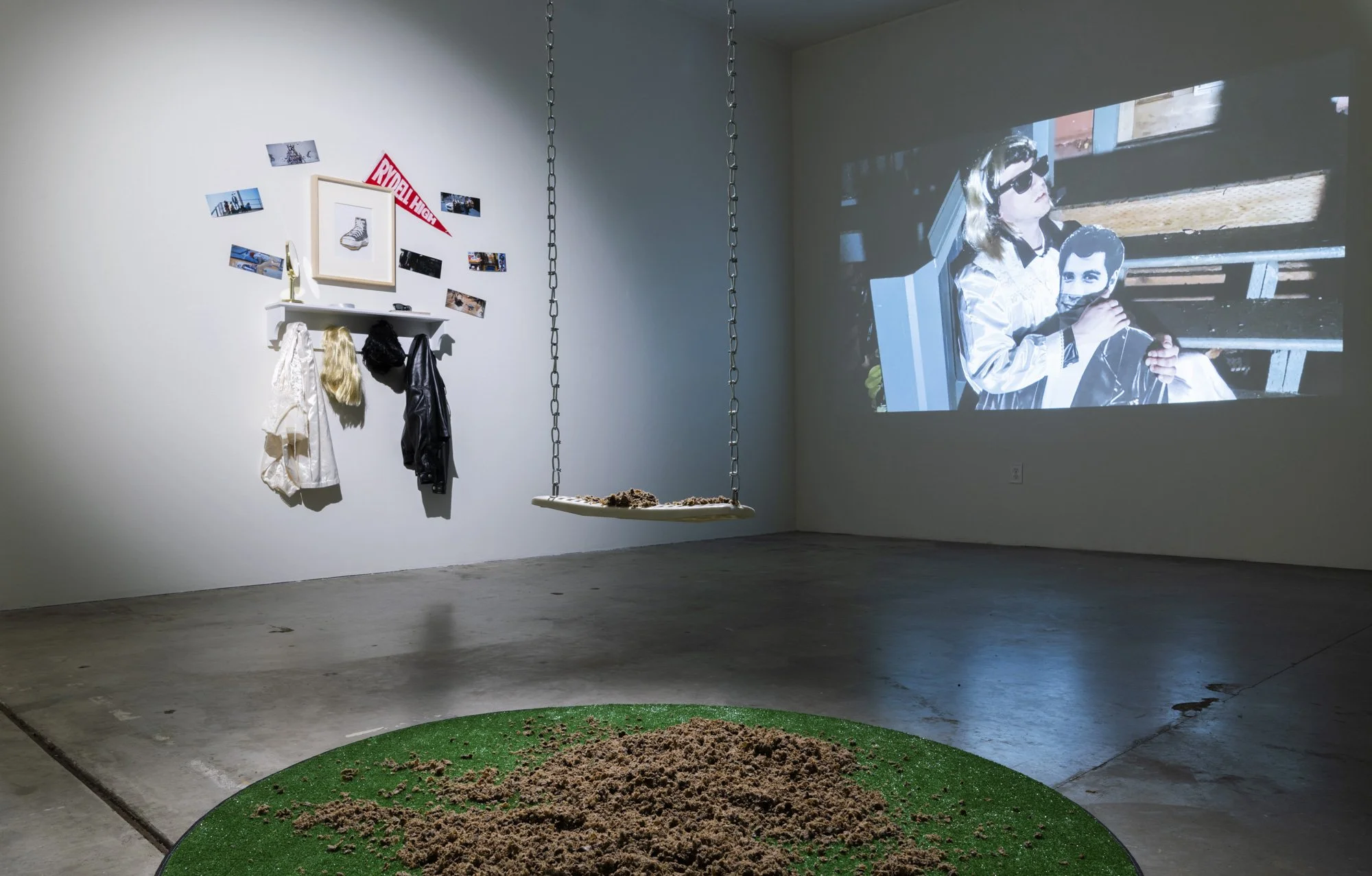 In his solo exhibition, Greased, Tyler Stoll asks the question: What if the timeless 1978 musical film was reshot, but the role of Danny Zuko was played by a homemade cardboard cutout of John Travolta that slowly disintegrates throughout the film, leaving behind only a pile of pulp?